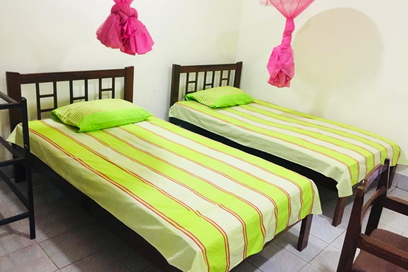 This hostel has 6 triple rooms with a common bathroom. It can provide accommodation for 18 individuals at a time.