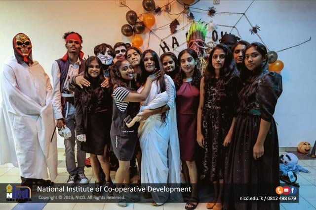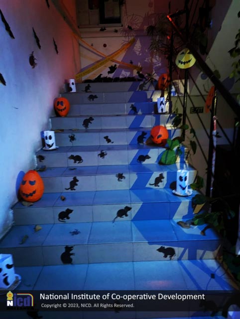 Spooky Halloween time NICD - National Institute of Co-operative Development with NVQ Level 3 and NVQ Level 4 NICD Students 2023.10.31. All decorations are done by our students with their creativity mind using items found in the environment.